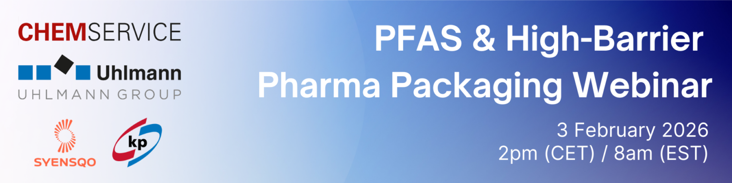 Um Ihnen bei der Bewältigung dieser Herausforderungen zu helfen, laden wir Sie zu einem Experten-Webinar ein, das gemeinsam von Chemservice, Syensqo, Uhlmann Pac-Systeme und Klöckner Pentaplast veranstaltet wird. Dieses Webinar findet am 3. Februar 2026 um 14:00 Uhr (MEZ) / 8:00 Uhr (EST) statt und vereint Fachwissen aus den Bereichen Regulierung, Materialien und Maschinen, um praktische, hochbarrierefähige Verpackungslösungen vorzustellen, die den aktuellen und zukünftigen PFAS-Anforderungen entsprechen.